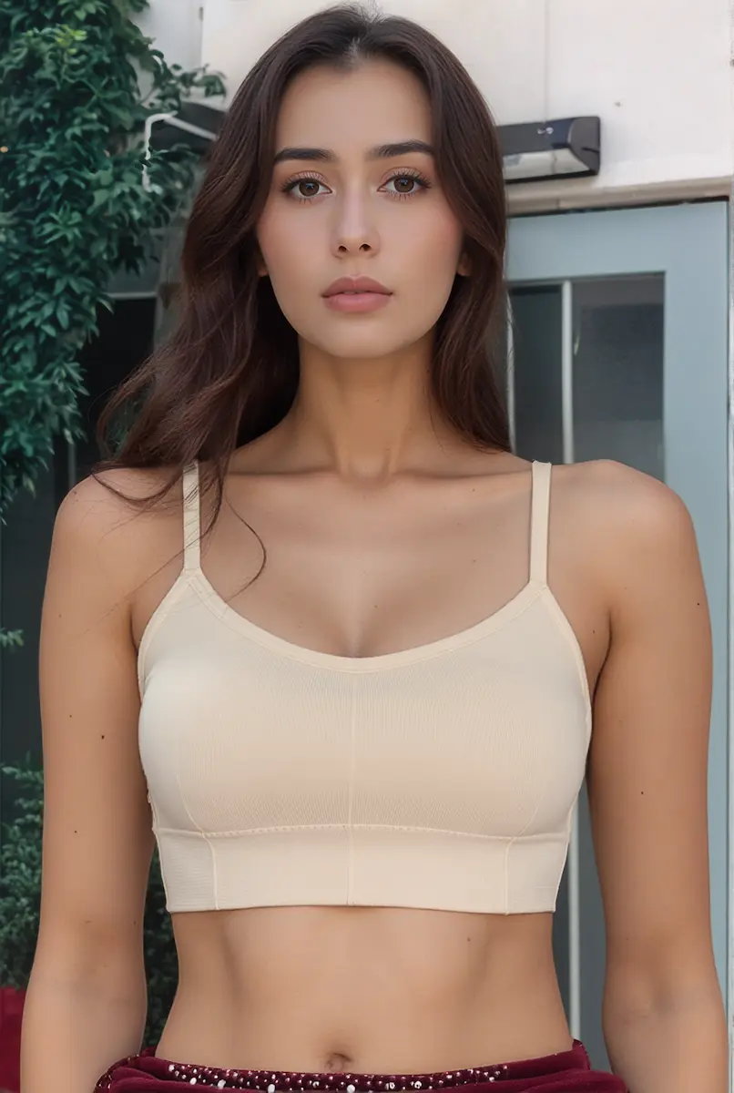 ribbed cotton Seamless Bra with removable pads in skin tone with wider under-band that gives better support all day long, can also be used as crop top